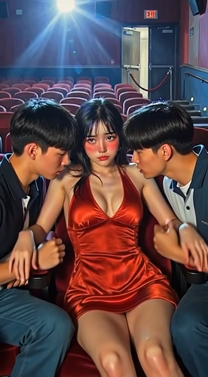 一行は、最後尾近くの端の三列シートに横並びに陣取った。里穂は当然真ん中で、左右を男子生徒に挟まれている。予告編の上映が始まるタイミングで館内の明かりが落とされる。それと同時に、魔手は再び里穂を襲う。