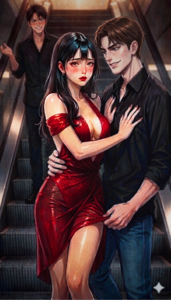 宗介は里穂の進路を阻み、腰元に手を回して階下へと向かうエスカレーターへ誘う。雄星によって汚された膣内を拭うことも許されず、女教師の肉体は宗介へと引き渡された。