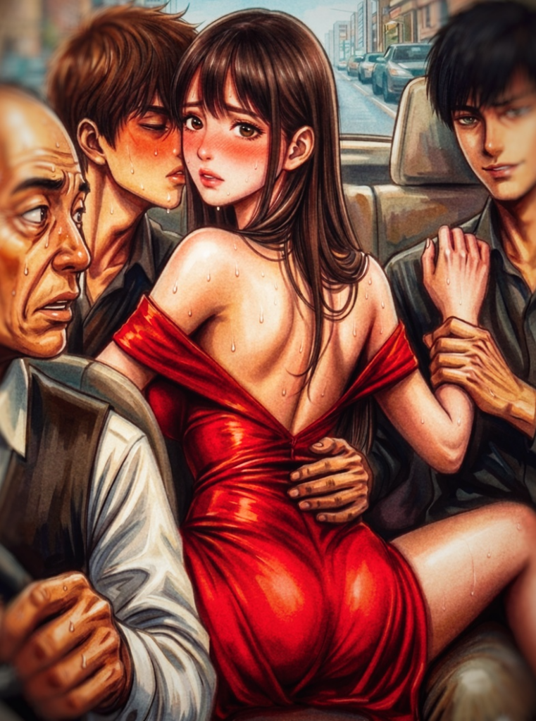 タクシーは、程なくして路肩に停車された。歩行者から覗き込まれないかと、里穂は気が気でない。不安げに目を泳がせる里穂の様子に、二人の少年はますます嗜虐心を昂らせる。