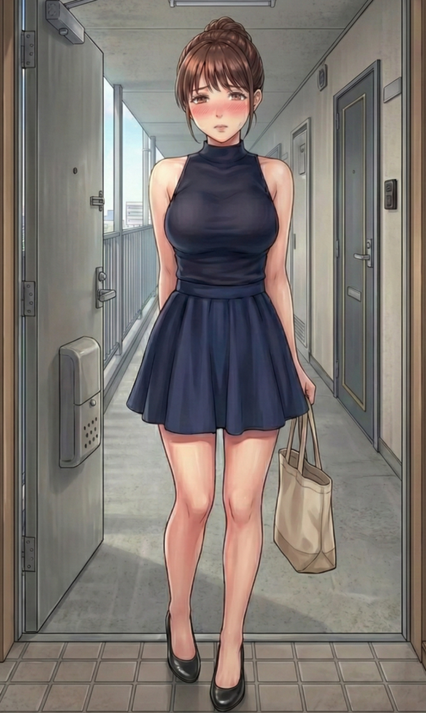 月曜日の朝八時、再び彼の部屋を訪れた私は、いつもの私とは、違っていた。濃紺色のアメリカンスリーブのカットソー。首元から布が広がっていくようなフォルムで、肩先が大胆に出ているし、胸の形もくっきりしていて、身体のシルエットが、そのまま出てしまうようなデザイン。それに、ミニ丈のフレアスカートを合わせている。普段は、スカートなら膝より短いものは絶対に履かなかったし、何より今日はストッキングを纏っていない生足だ。